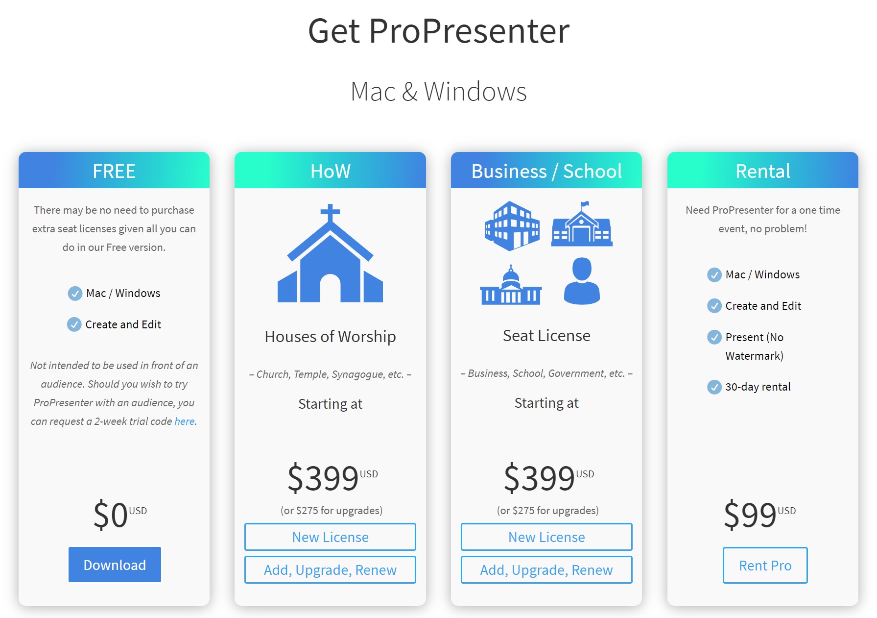 As of January 22, 2020, with the release of an all-new ProPresenter, we have adjusted your options for purchasing a license. One thing to understand is that our licenses are still perpetual, meani...