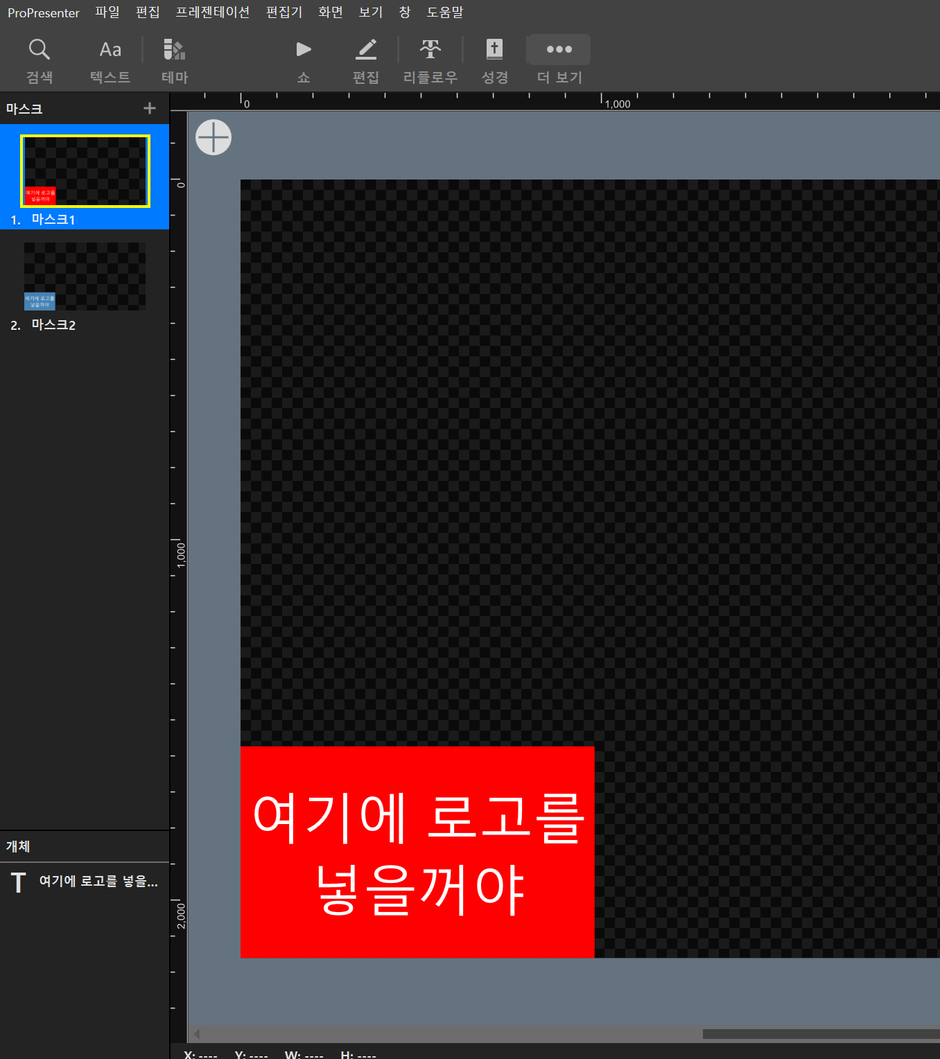 슬라이드에는 아무 변화가 없고 최종 출력에는 마스크 슬라이드가 오버레이 되고 있지요.